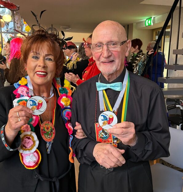 Na het optreden hebben twee van onze koorleden, Herman Zuuring en Marian van der Heijden, een onderscheiding ontvangen van de president van “Het Geberste Kruukske” Niek Saleming voor hun inspanning binnen ons smartlappenkoor “De Kleppers”.