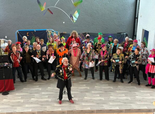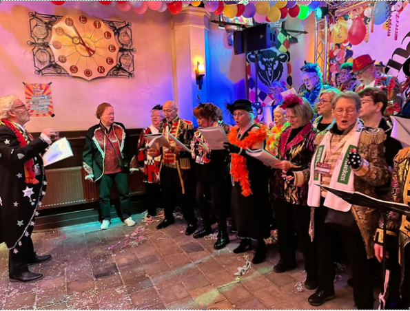 Zaterdag 01 maart 2025 waren wij uitgenodigd om in de Waagh te komen zingen met ons koor tijdens de carnaval. Na het nuttigen van een heerlijk broodje met rookworst hebben wij de boel op z’n kop gezet. Het publiek genoot van ons optreden en de polonaise werd in volle gang gezet.