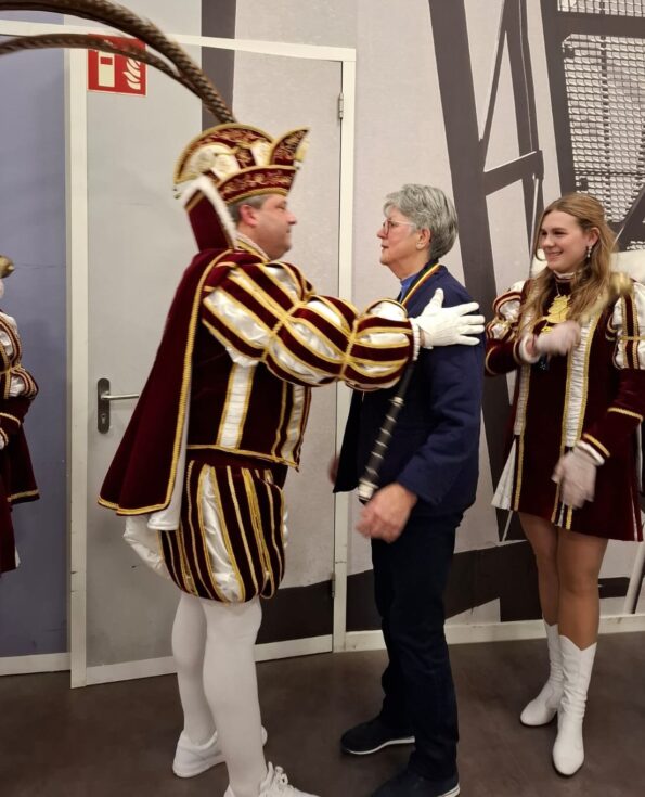 Op woensdag 8 januari 2025 werden wij verrast tijdens onze repetitieavond van smartlappenkoor “De Kleppers” met een bezoek van de Prins van Knotsenburg, Wilfred I en zijn kabinet . Hij bracht een verdiende onderscheiding mee voor Hubie van der Toorn-van Boxtel voor haar inzet als secretariaat medewerker van ons koor.